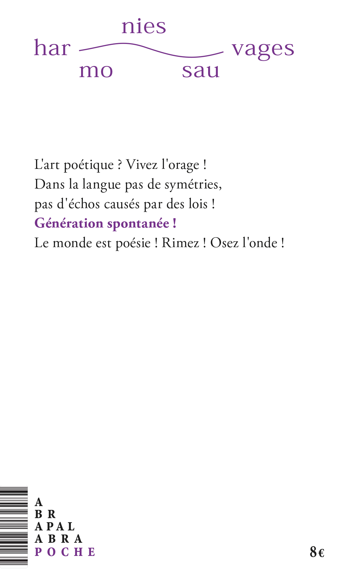 Avec ce carnet de voyage à travers notre époque, l’auteur nous montre les couleurs que prend la langue quand elle se fait musique. Il entrouvre des fenêtres comme des jours dans le temps, parfois le sien, parfois le nôtre. Il laisse les lecteur·ice·s tantôt ébahi·e·s, tantôt désabusé·e·s, il n’y a pas d’harmonie sans contraste. Dans ce recueil, la partition est secrète et les harmonies peut-être moins sauvages qu’il n’y paraît.