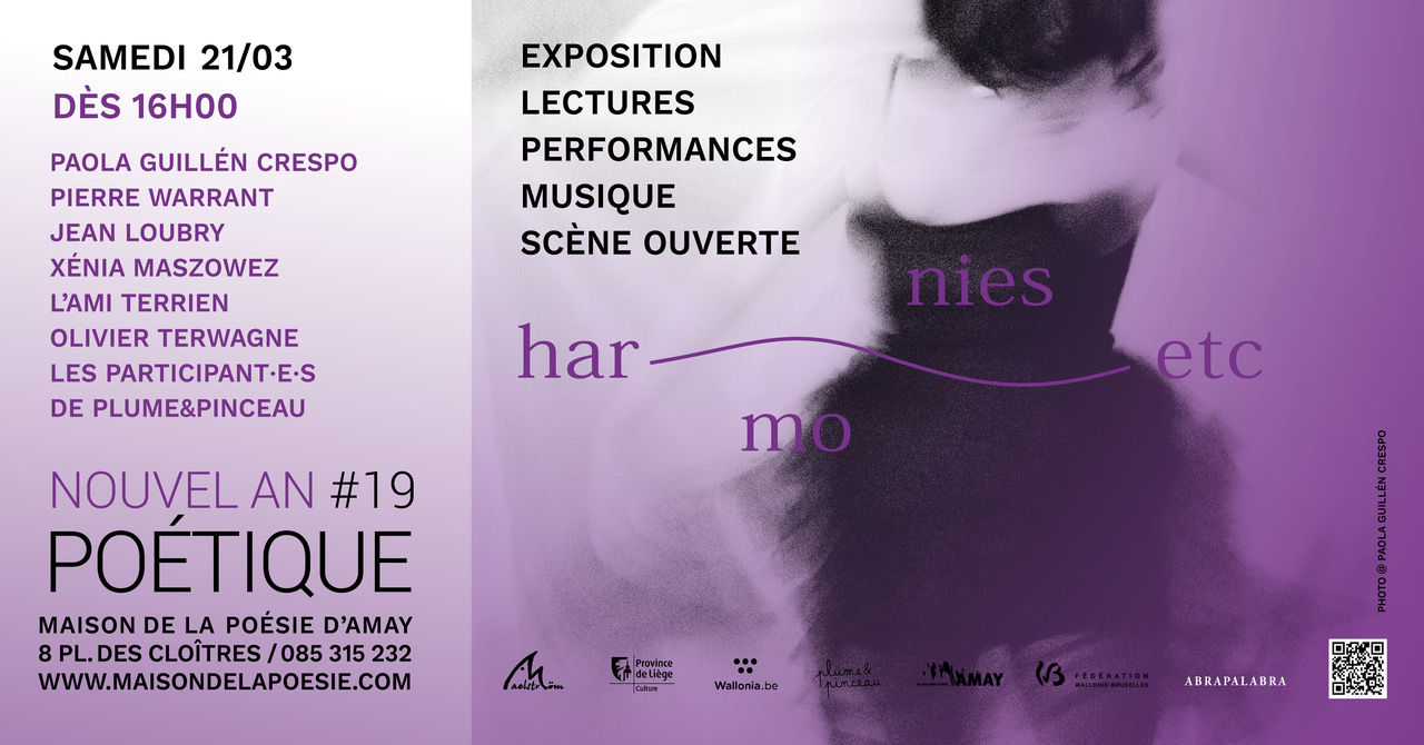 16h: Lectures et présentation du recueil Harmonies etc qui réunit les poèmes et les réalisations artistiques des ateliers du CEC plume&pinceau avec des auteur.ice.s et des artistes en chemin ou confirmé.e.s
