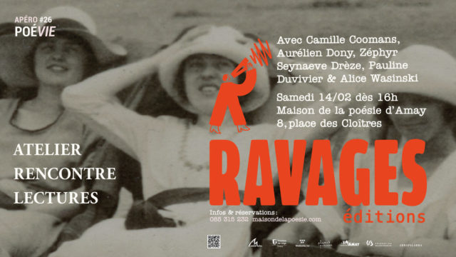 Le samedi 14 février nous fêtons la naissance des éditions Ravages à la Maison de la poésie avec la présence des éditeur.ice.s Camille Coomans,
